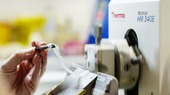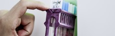 Patientendaten und klinische Informationen werden in das Informationssystem des Labors eingegeben, eine Labornummer und ein Strichcode-Aufkleber erstellt und auf Gefäß und Begleitformulare geklebt.